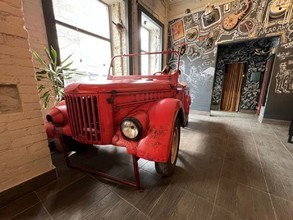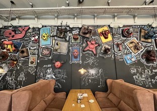 Два деда —это необычный дизайн интерьера, который тщательно собран, из сотен, сделанных своими руками деталей, чтобы преподнести своим гостям атмосферу дедовского гаража. Стены этого заведения можно читать как комикс, экспонаты этого гаражного музея часто фотографируют гости города, чтобы поделится этим причудливыми железными зверьками.